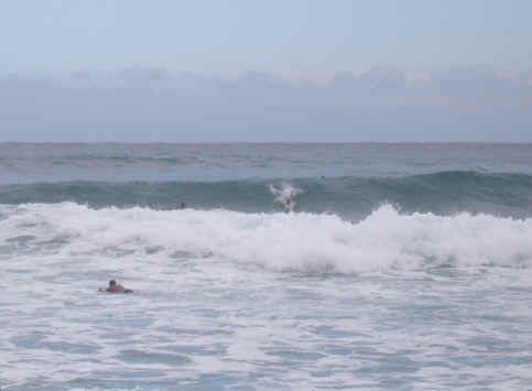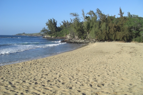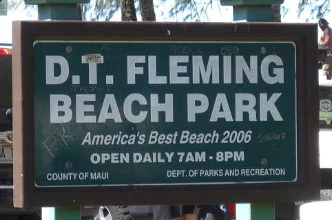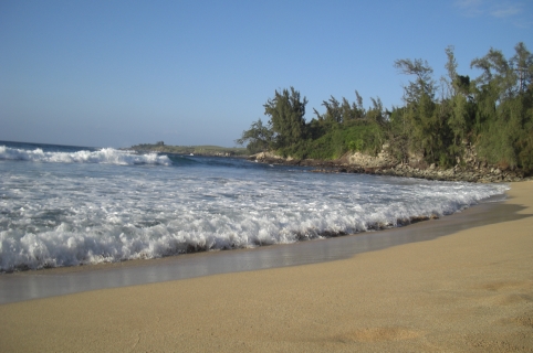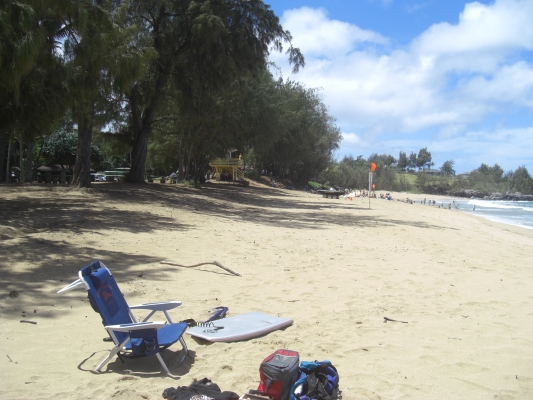 PARKING: Nice paved parking lots. ACCESS: Very easy access from parking lot. BEACH: Very large and sandy. Shady areas are available. As you see in the below photos, it can be secluded at times. SWIMMING: Be very careful of the shorebreak on the left side. It can be very powerful and cause serious injury as one's body is slammed into the sand. I have personally watched healthy teens taken away in ambulances. There are lifeguards so ask them about the current conditions. Normally the current is outward in front of the lifeguard station and inward to the right of the station. If the surf isn't big, this is a great swimming beach. Contrary to some other reviews, I have never seen a steep slope or substantial backwash at Fleming. Stay to the left of the lifeguard station to avoid the outward current and to stay in the sandy portion of the beach. SNORKELING: On calm days, the area to the right is fairly nice snorkeling. Turtles hang out there often. BOOGIE BOARDING: In the center of the bay, the waves tend to come in evenly and it can be a good place for beginner boogie boarders if the waves aren't too big. One is able to stand up waist high and jump on the board in about 1/2 of the beach. At the far left (South) end, can be a shore break called "gas chambers." That area if the waves are big is best left to the expert boogie boarders. If you have experience, boogie boarding can be done on the right side as well. See below. SURFING: On the right (North) side, there is very good surfing in the winter months (North swell). Avoid the very right side near shore as there is a very shallow reef. |