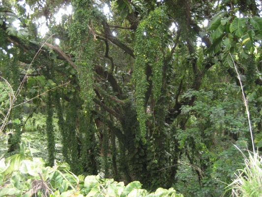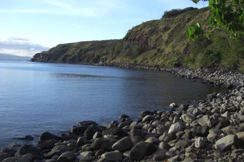 PARKING: There are two parking spots, one on the road where you'll see a sign not to block the driveway and one about 2 blocks North in a dirt parking lot. Absolutely do not leave valuables in your car. My suggestion is to leave a window open to keep it from being broken. ACCESS: About 2 block walk down a dirt road from the South entrance. This is now private access. The owner allows access between 5AM and 5PM only. Donations are accepted. If you are prone to mosquito bites, wear repellant. The owner has rules banning the use of sun block. BEACH: Virtually all rounded rock. This is not a lounging beach. Shady areas are available. SWIMMING: It is fairly shallow for a while and there are plenty of rocks below the surface. One can swim here but it isn't optimal. SNORKELING: On all but high surf days, this is one of the top snorkeling bays. Many of the snorkeling tour boats bring paid customers here. The beach consists of mainly large smooth rocks. The best place to enter is off to the left, where normally there is a small sandy spot. The water can be a bit murky near shore. The snorkeling is good on both sides of the bay. SURFING: Surfing is excellent out on the point during a North swell. To access that area, drive about 1 mile North and take a dirt road above the point. Snorkeling can be done in the bay at the same time surfers are enjoying waves at the point. This is a fairly local surfing area so be respectful to avoid unnecessary confrontation. |