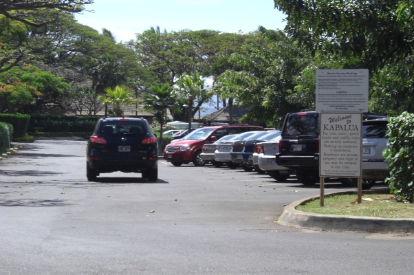 (Light and Napili sign), R at the T, about .9 miles to the parking lot. (see first photo)