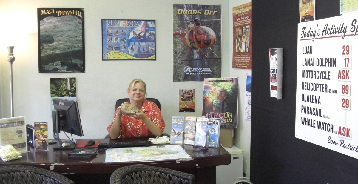 MJ has offered to give a discount to people I send to her from our website. That discount will range from 5-15% depending on the activity. These discounts do not require any type of presentation or other commitment on your part. She is also happy to fill you in on local places to snorkel, great food deals, provide a road map around the island or just suggest a great beach to relax. She truly enjoys helping people make the most of their time here on Maui and customizing their stay. If you would prefer to receive more than a 15% discount and receive free or deep discounted activities, she can explain your option of participating in a non-pressure, 90 minute PowerPoint GROUP presentation that walks you through a very popular internet global vacation club. She works for Tickets on the Rock (http://ticketsontherock.com/about.htm), a Hawaiian island discount activity company. They sell retail, discount, and deep discounted activities; whatever suites your lifestyle, the choice is yours. In any manner, she is happy to help you create and schedule your dream vacation just as you have pictured it. You can reach her at 570.778.8296 or mjsamuelsen@yahoo.com. Please tell her Rick sent you so that she can be sure to give you the proper customer discount per our agreement. Enjoy your trip! |